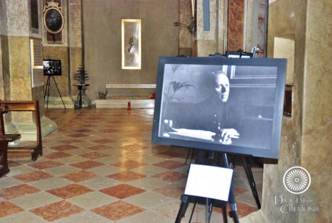 La prima, proposta come un percorso che attraversa la navata destra e conduce alla tomba di don Mazzolari, è la rassegna fotografica “Don Primo Mazzolari, tromba dello Spirito Santo in terra mantovana” di Elisabetta Saviola. Un’importante occasione per riscoprire la biografia di don Primo a cura di un’artista locale che, a partire dalla sua storia familiare, decide di ripercorrere le tappe salienti della vita di colui che Giovanni XXIII definì “tromba dello Spirito Santo” e lo fa fotografando personalmente “i luoghi dove don Primo ha cercato di cambiare il mondo attraverso amore appassionato e dedizione incondizionata”. L’esposizione contiene sia foto d’archivio di don Primo, gentilmente concesse dalla Fondazione Don Primo Mazzolari, sia scatti dell’artista che – grazie all’utilizzo della tecnica HDR – ha saputo riprodurre “le forti ombre del passato che hanno accompagnato la turbolente vita di Don Primo e le forti luci del presente e futuro cammino di speranza che Mazzolari ha scritto per noi”.