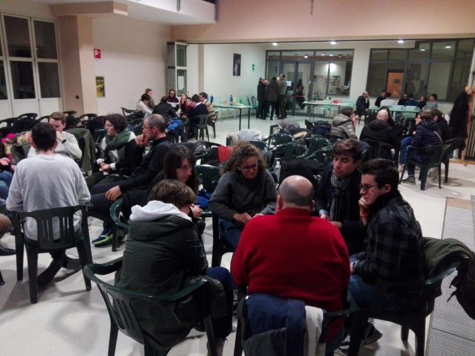 Successivamente, tutti i giovani presenti all’incontro sono stati suddivisi in sette gruppi di discussione, formati da persone che vivono, o hanno vissuto, scenari differenti (partecipanti al progetto Erasmus, fuori sede, pendolari, stabili e con luogo di studio/lavoro vicino a casa), permettendo, in questo modo, un confronto complesso e variegato sui punti di forza e di debolezza dei diversi luoghi che i giovani hanno l’opportunità di popolare oggi.