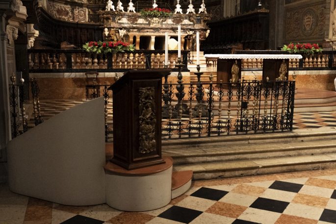 L’attuale provvisoria dislocazione dei poli liturgici non esprime compiutamente l’articolazione dell’assemblea e della sua ricchezza ministeriale e non evidenzia armonicamente con l’antichità dell’edificio la pluralità dei soggetti che “abitano” la Cattedrale. Si richiede pertanto ai progettisti, nel rispetto dell’esistente, di trovare le modalità migliori per “fare e dare spazio” ai diversi “attori” della liturgia e della vita festiva e feriale della Cattedrale, perché l’aula vuota quasi catechizzi sul mistero della Chiesa e soprattutto l’aula abitata dall’assemblea dei fedeli trovi spazi adeguati per compiere con naturalezza i gesti e i movimenti che durante i riti la rendono epifania-manifestazione della Chiesa stessa.