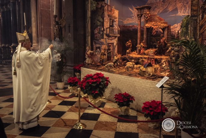 «Il bene va detto perché Dio, dicendo il bene, l’ha operato». Così il vescovo Antonio Napolioni ha concluso l’omelia, densa di significato, della Messa della Notte di Natale, presieduta nella prima serata di giovedì 24 dicembre nella Cattedrale di Cremona, in modo da permettere ai fedeli il rientro nelle abitazioni prima dello scattare del coprifuoco, alle 22.