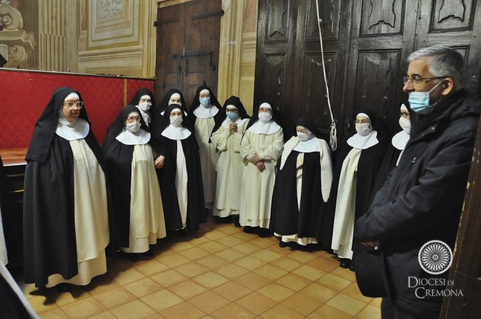 Nella soleggiata mattina di sabato 26 dicembre il vescovo Antonio Napolioni si è recato presso il monastero di clausura di San Sigismondo, a Cremona, per celebrare la Messa della festività di Santo Stefano con le monache domenicane e i fedeli presenti: l’Eucarestia è stata concelebrata dal cappellano don Daniele Piazzi e dal segretario e cerimoniere vescovile don Flavio Meani.