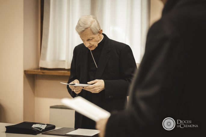«Nel giorno anniversario della sua ordinazione episcopale, anche a nome del presbiterio diocesano e dell’intera Chiesa cremonese, le esprimo i più vivi e fraterni auguri. Colgo l’occasione per ringraziarla del prezioso servizio che anche da Vescovo emerito continua ad esercitare con generosità e discrezione a favore della diocesi. Ugualmente la ringrazio per la testimonianza di autentica fraternità con il Vescovo Antonio che è per tutti noi motivo di edificazione»