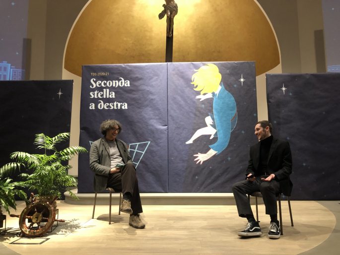 A partire da questa ipotesi, Giorgio Prada ha suggerito l’analisi di due canzoni: “La mia città” di Luca Carboni (1992) e “L’isola che non c’è” di Edoardo Bennato (1980). La prima, pur risalendo a quasi 30 anni fa, risulta estremamente attuale e significativa secondo Prada, che trova un’analogia tra il modo di vivere la città di Carboni e l’approccio alla vita di un giovane oggi. La seconda, riprendendo il tema portante del percorso di Tds di quest’anno, incentrato sulla figura di Peter Pan con tutte le sue luci ed ombre, ha permesso di stuzzicare il giovane pubblico su una modalità nuova per ri-generare le relazioni e, al contempo, “cambiare le cose”: il sogno. Sogno da intendersi come condivisione di progettualità, idee, aspettative, desideri, e dunque immaginazione condivisa di un futuro.