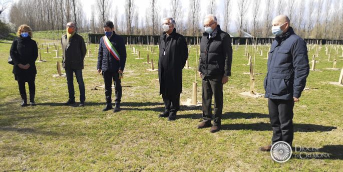 Nel pomeriggio di giovedì 18 marzo a Cremona sono stati ricordati e onorati i cittadini cremonesi morti a causa del Covid-19. L’iniziativa, organizzata nell’ambito della Giornata nazionale in memoria di tutte le vittime dell’epidemia di Covid-19, istituita dal Parlamento per conservare e rinnovare la memoria di tutte le persone che sono decedute a causa di tale epidemia, ha avuto luogo alle 14, senza presenza di pubblico, nel bosco realizzato dal Comune in via Cascina Corte e dedicato alla memoria di queste persone. Presente, insieme al prefetto Vito Danilo Gagliardi e al sindaco Gianluca Galimberti, il vescovo Antonio Napolioni.