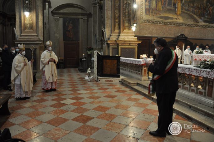 Anche quest’anno una celebrazione partecipata, pur nel rispetto delle norme vigenti dovute alla pandemia, iniziata con il saluto del sindaco di Bozzolo Giuseppe Torchio e il benvenuto a mons. Busca da parte del vescovo Napolioni.