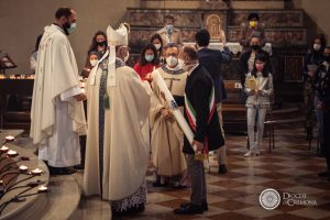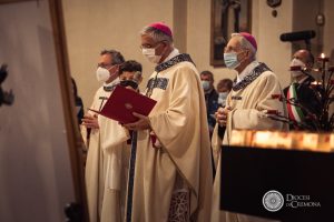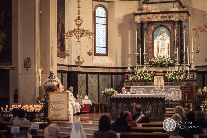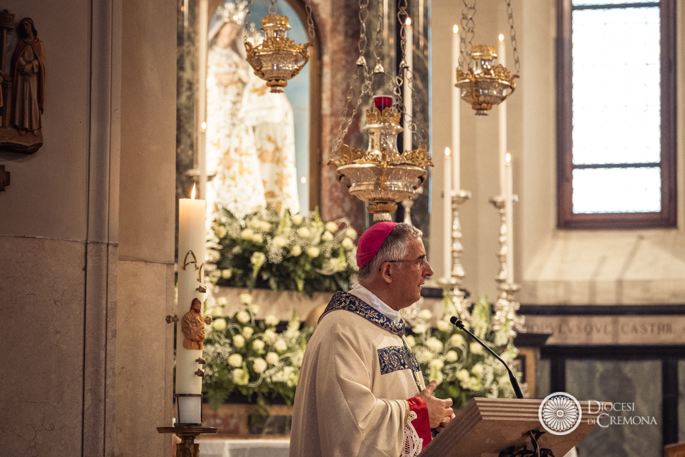 All’inizio della Messa, concelebrata dal vescovo emerito Dante Lafranconi, con il rettore del santuario e il parroco di Castelleone, don Giambattista Piacentini, il vicario don Matteo Alberti, il vicario episcopale per la pastorale ordinaria don Gianpaolo Maccagni, don Giovanni Sanfelici, don Paolo Tomasi e il diacono Angelo Papa il, il vescovo ha acceso un grande cero che il sindaco di Castelleone Pietro Enrico Fiori ha poi portato all’altare dedicato alla Vergine della Misericordia.