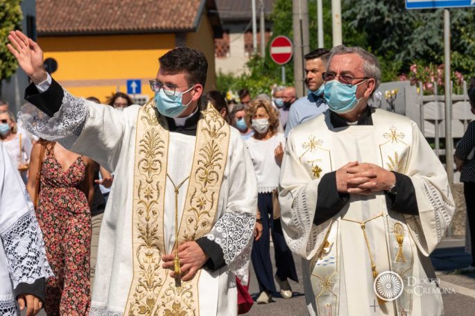 La vicinanza, espressa da don Nozza, è stata tangibile e si è respirata nel corteo che dalla casa ha condotto all’oratorio, dal quale, dopo il messaggio del sindaco, è partita la processione per raggiungere la chiesa. La gente ai bordi delle strade e affacciata a balconi e finestre ha fatto respirare quel senso di parrocchia, paroikìa dal greco, ovvero essere vicino, essere tra le case.