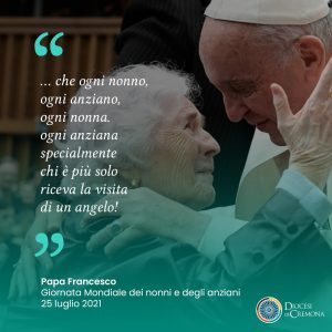 La preghiera è quella ufficiale della prima Giornata Mondiale dei Nonni e degli Anziani che ricorre, per volere del Papa, domenica prossima 25 luglio con la Messa celebrata nella Basilica di San Pietro alle ore 10.00, presieduta dall’arcivescovo Rino Fisichella presidente del Pontificio Consiglio per la Promozione della Nuova Evangelizzazione. Saranno presenti duemila persone della Diocesi e di associazioni impegnate nella pastorale della terza età.