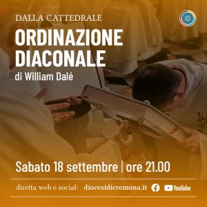 Nella serata di sabato 18 settembre, alle 21, nella Cattedrale di Cremona, sarà ordinato diacono William Dalé, il 27enne originario della parrocchia Santa Maria Assunta e San Giacomo apostolo di Soncino. La celebrazione sarà proposta in diretta streaming sui canali web della diocesi.