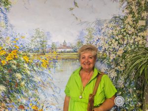 “Un giorno – ha raccontato Rossana – sono entrata al centro Caritas per bere un caffè con un’amica, che è anche una dei volontari del bar. Ho visto questa grande parete bianca ed ho pensato che avrei potuto dipingerla. In realtà ero partita con l’idea di affrescarne soltanto un angolo. Poi, dopo aver cominciato, sono andata avanti, e avanti ancora fino a dipingere tutta la parete, il retro del bancone del bar ed altri angoli. Non è proprio un affresco, io lo chiamerei semplicemente un dipinto su muro realizzato con acrilico e vinilico. Per dare il senso della profondità ho immaginato un affaccio da un davanzale dal quale si vede la campagna con Vailate da una parte ed il santuario di Santa Maria del Fonte dall’altra, entrambi in lontananza”.