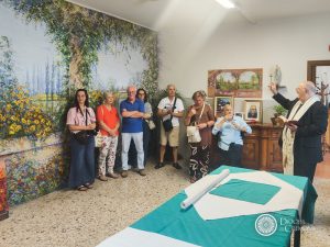 Entrare in una stanza e trovare una parete interamente affrescata con un dipinto che richiama la campagna, varie essenze floreali e la natura in generale, è molto diverso che entrare e trovare una parete spoglia. È proprio questo l’effetto che fa adesso il salone adibito a bar e ricreazione del centro “Aldo Fontana e Ornella Cervi” della Caritas parrocchiale di Vailate dove nel pomeriggio di domenica 7 luglio il parroco don Natalino Tibaldini, presenti i volontari e gli utenti della struttura di via Pietro Vailati, il collaboratore parrocchiale don Edoardo Nisoli e gli amministratori comunali, ha inaugurato l’opera, realizzata dall’artista vailatese Rossana Muchetti.