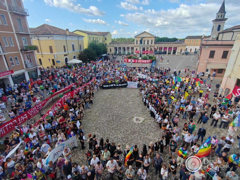 «Speriamo di essere in tanti». La signora, insieme al marito, attraversa la via principale di Bozzolo quasi deserta per dirigersi verso piazza Europa. La strada è stata sgomberata dalle auto. Bandiere arcobaleno con la scritta bianca “Pace” e della Palestina sono state appese lungo il percorso. Volontari e forze dell’ordine controllano i punti di accesso verso il centro. Il paese è in uno stato di calma inquieta. Alla fine, secondo gli organizzatori, sono state più di 1.500 le persone che nel pomeriggio di sabato 30 agosto hanno risposto presente alla marcia “Gaza nostra ostinazione”, promossa a favore della pace e a sostegno del popolo palestinese, patrocinata dal Comune locale e organizzata da Mantova per la Pace, Tavola della Pace di Cremona e dell’Oglio Po, i gruppi di solidarietà con la Palestina della Bassa Bresciana e l’Ufficio Missionario della Diocesi di Cremona.