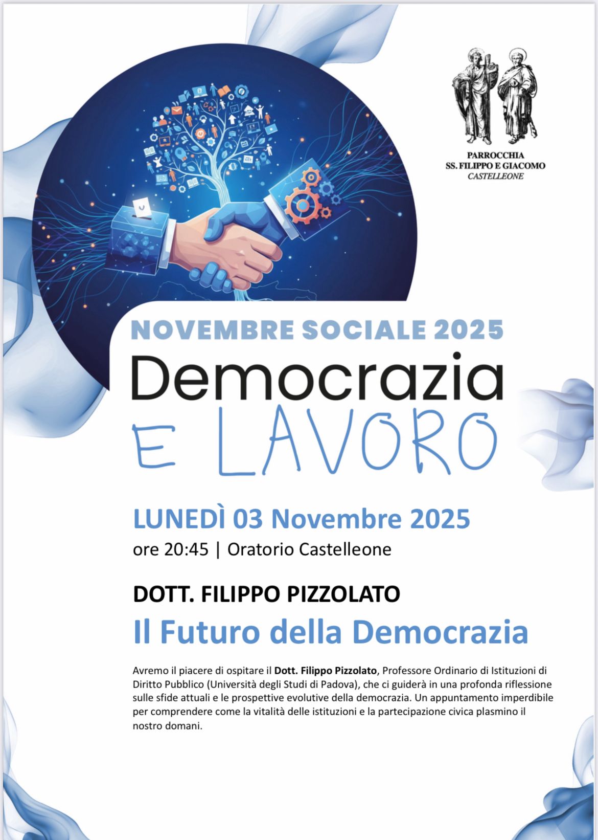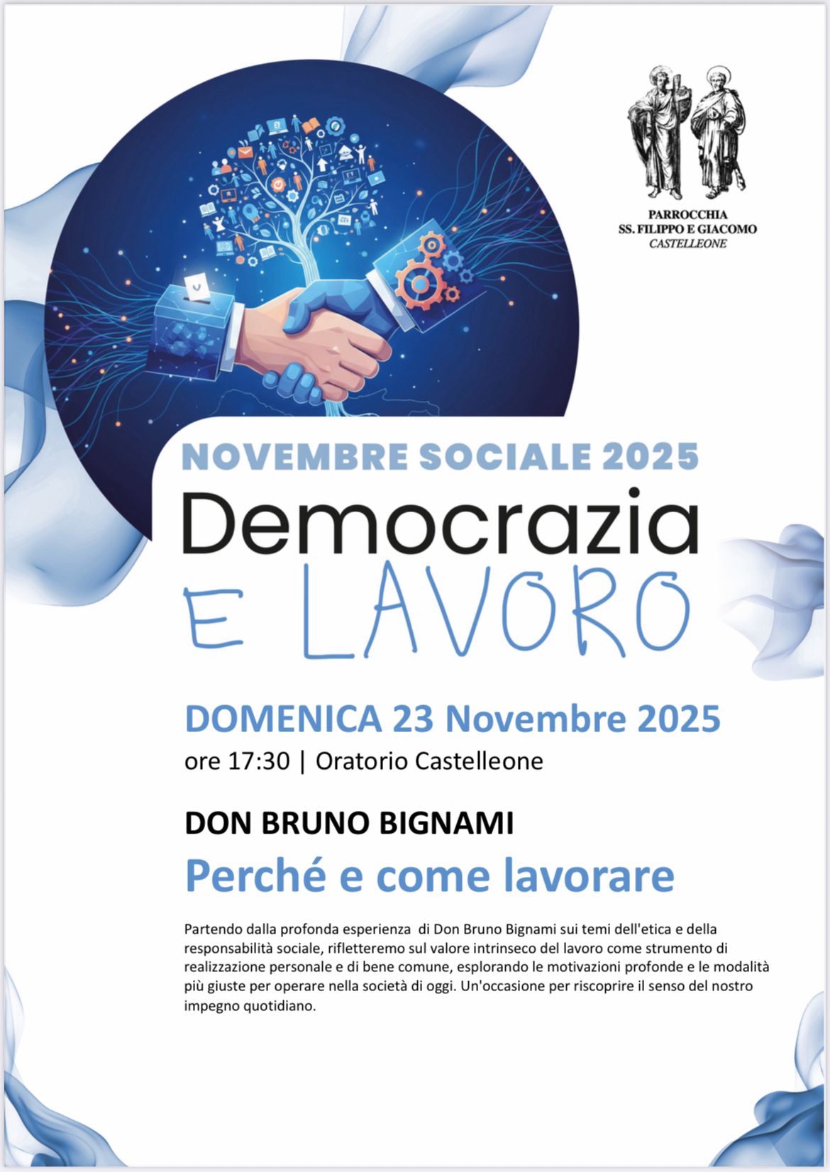Dopo la serie di incontri sull’intelligenza artificiale dell’anno scorso, torna a Castelleone il “Novembre sociale” con un ciclo di incontri che vuole riscoprire il fondamento della Costituzione: l’articolo 1: “L’Italia è una Repubblica democratica, fondata sul lavoro”, parole profetiche di allora che oggi sono sempre più messe in discussione, circa la loro validità attuale e sopratutto in cambiamenti degli scenari attuali.