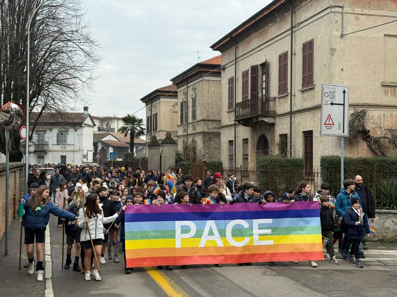Domenica 18 gennaio, per l’iniziativa “Insieme per scegliere la pace”, in mattinata si è svolta la “Marcia solidale con tutti i popoli in guerra”, che ha visto la numerosa partecipazione di bambini, giovani, adulti e anche meno giovani. La marcia, partita da piazza del Comune, è arrivata in via Beccadello, nel cortile della Scuola primaria, dove è stato piantato l’ulivo della pace, mentre alla cancellata sono stati appesi i nastri con i desideri di pace e di speranza dei bambini.