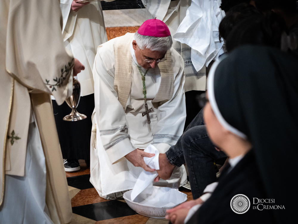 «Abbiamo chiesto a fratelli e sorelle di varie comunità presenti nella nostra città e nel nostro territorio di dare volto al mondo», ha spiegato il vescovo, definendo la lavanda dei piedi come un gesto «rituale, sì, ma significativo e compromettente». Un segno che esprime la missione stessa della comunità cristiana: «La Chiesa vuole lavare i piedi al mondo perché il Figlio di Dio non è venuto a condannare il mondo, ma a dirgli quanto Dio lo ama, fino alla fine, fino agli estremi confini del tempo e dello spazio».